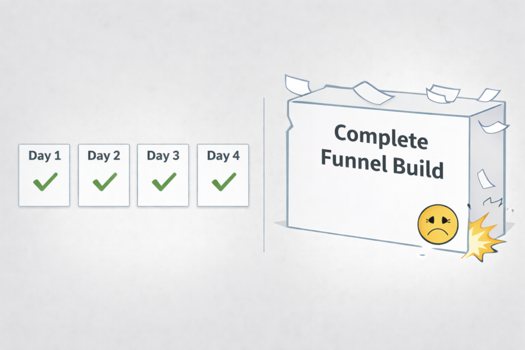 Then reality hits. You get stuck in tech hell and never launch. Or you launch but the funnel is so complicated you can’t figure out what’s broken. Or you burn all your energy building and have nothing left to actually drive traffic to your business.